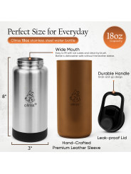 What truly sets this water bottle apart is the luxurious leather sleeve, individually hand-crafted from high-end, full-grain leather. No two sleeves are exactly alike—each one is shaped, stitched, and finished by skilled artisans, creating a product that feels as unique as the person carrying it. The leather provides a comfortable, secure grip while adding natural insulation and a timeless aesthetic that only gets better with age.