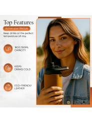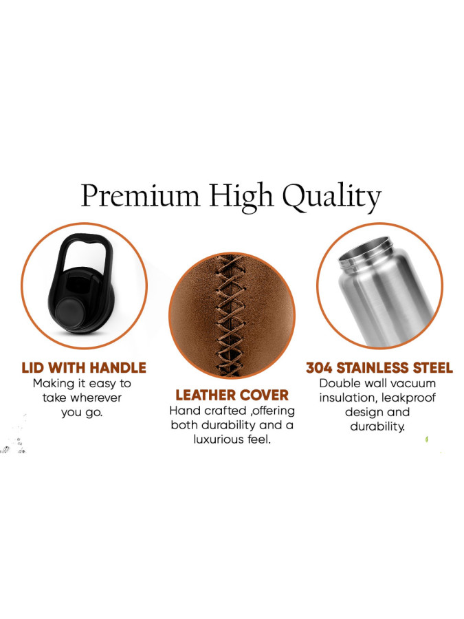 Perfect for those who value craftsmanship and thoughtful design, this water bottle makes a statement without saying a word. Its sleek silhouette and premium materials make it ideal for daily use, gifting, or complementing a refined lifestyle. From the quality of the leather to the performance of the stainless steel, every detail is crafted with care and meant to last.