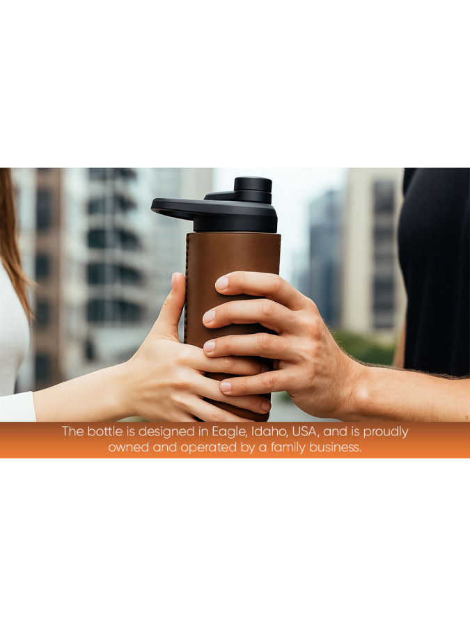 Whether you're looking for a stylish and dependable hydration solution, a distinctive accessory, or a meaningful gift, this 18oz stainless steel water bottle with a handcrafted leather sleeve delivers a level of quality and elegance that stands out from the rest. Designed with pride in Eagle, Idaho—where family, craftsmanship, and American-made excellence come together.